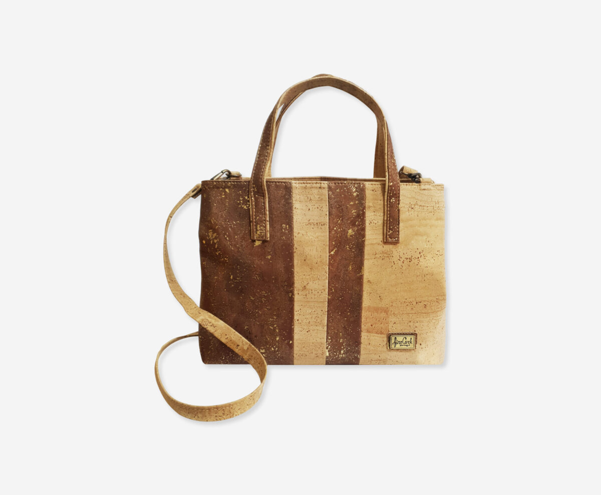 Top Handle Bag with high quality cork. The bag has two main compartment where you can put enough things there whenever you go out. Closes with a zipper. There is a top handle and long adjustable, removable shoulder strap. Bag can be worn on the shoulder or over the shoulder. In front there is a our branded label.