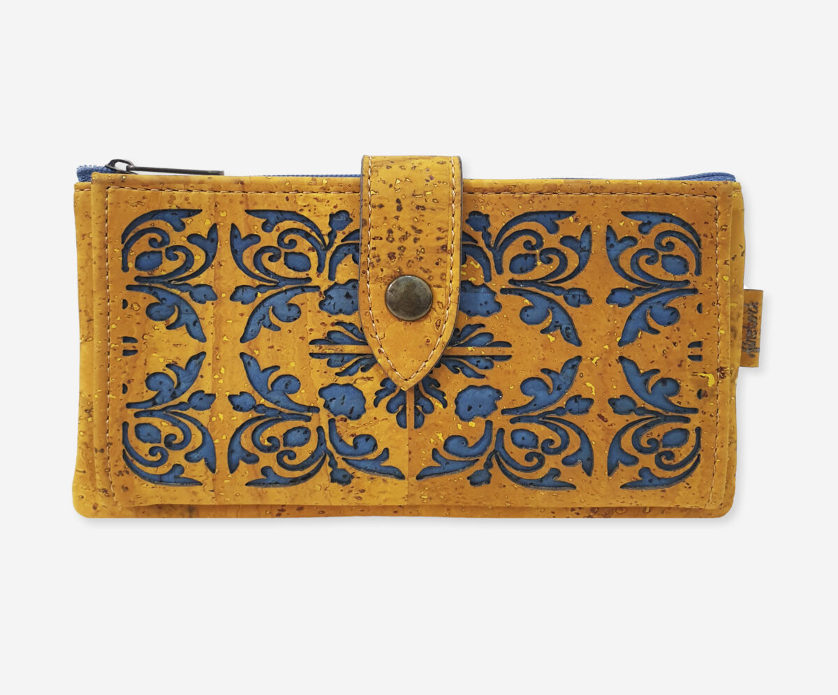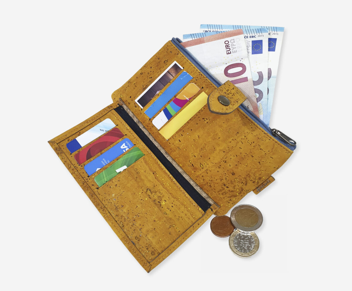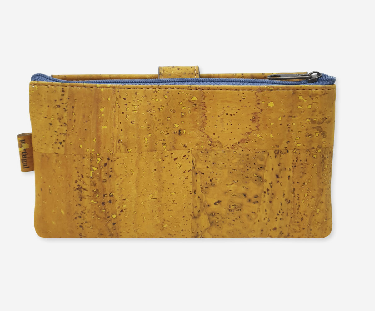 Long wallet for women made with high quality cork with perforated effect design to it’s front, and has a subtle logo our company plaque to it’s front.
