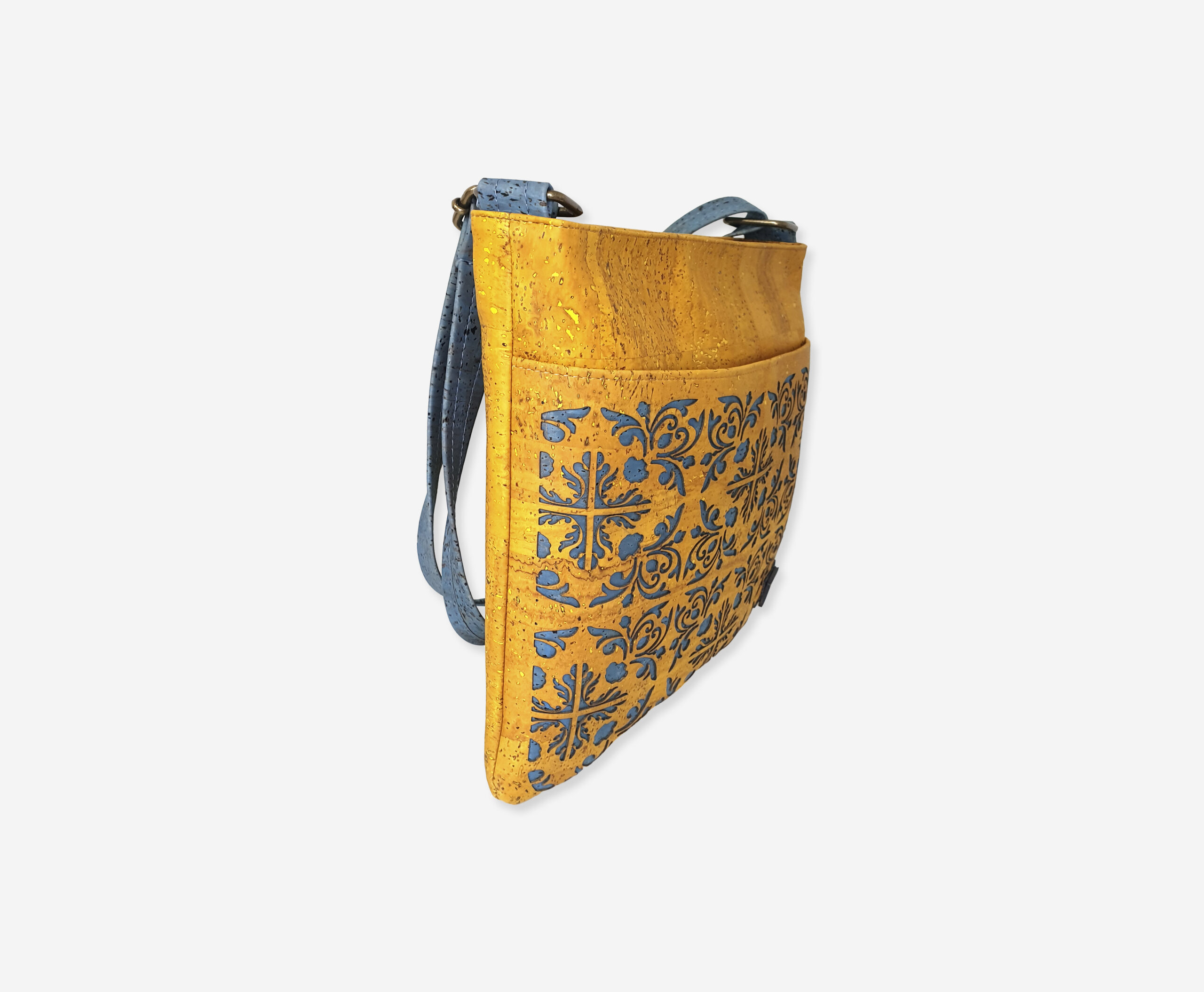 The Shoulder Bag made with high quality cork many colors with perforated effect. There is have decorative pattern represents the famous portugues filigrin cut on cork. Bag closes with a zipper on the top. Also bag has large pocket on the front closes magnet clap. Has adjustable shoulder strap and bag can be worn over the shoulder or on the shoulder.In front there is a our branded label.