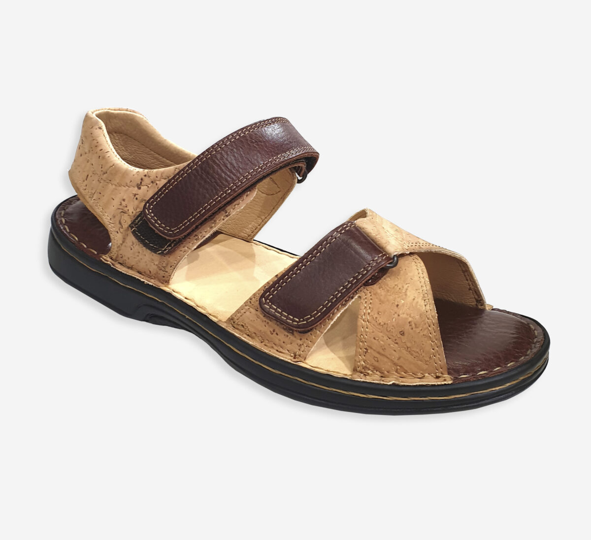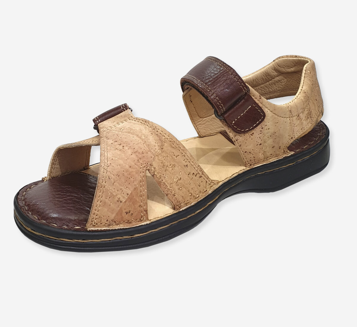 Men´s orthopedic sandals with a natural cork upper and full leather lining. The orthopedic insole provides proper foot support and all-day comfort. A lightweight rubber platform adds stability and cushioning, making every step soft and confident. A great choice for everyday wear with a focus on foot health.