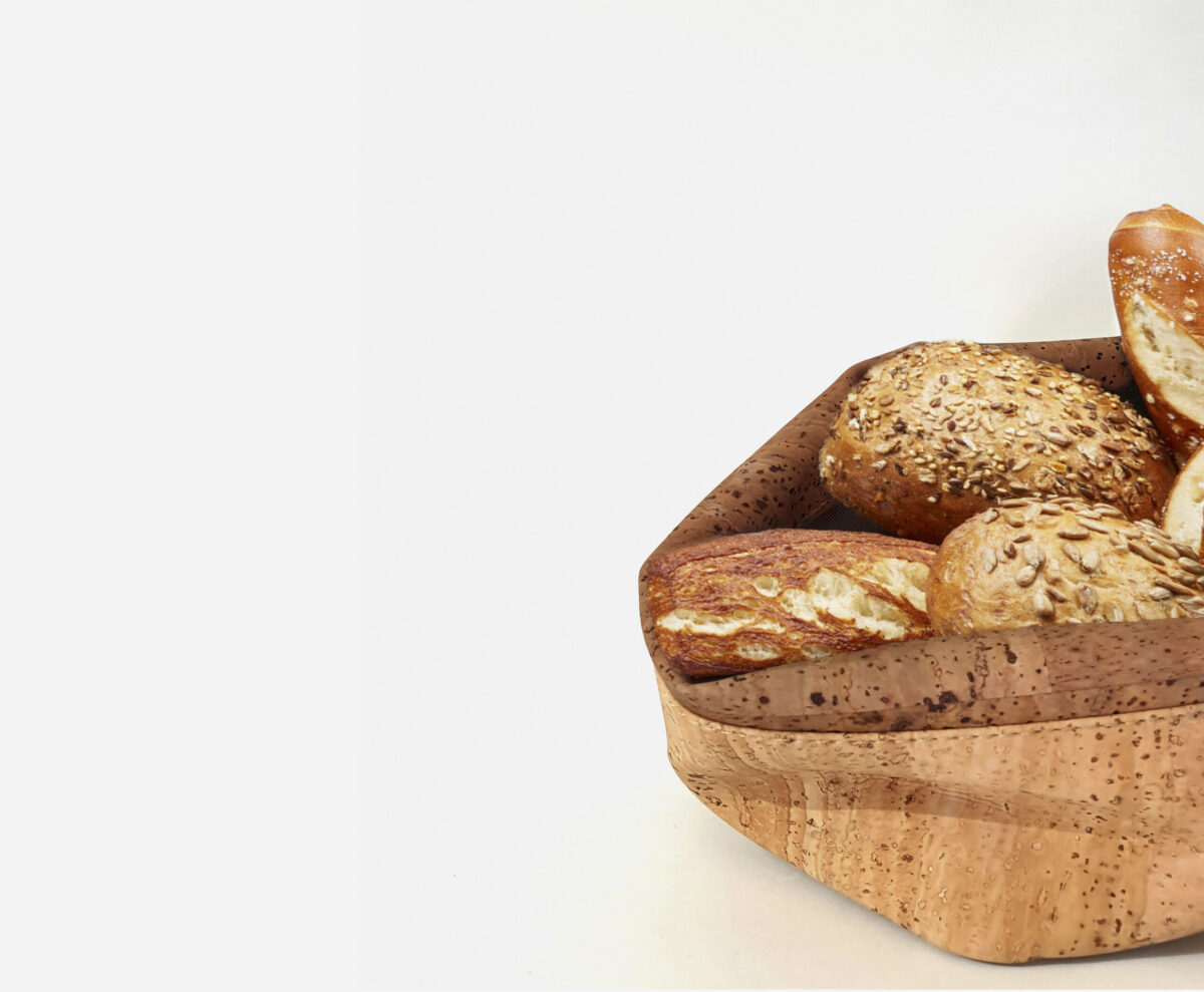 Cork Bread Basket resistant on the table, and are also good choice because they are: anti-allergic, anti-fungal, anti bacterial, anti static, fire resistant, washable and 100% vegan.