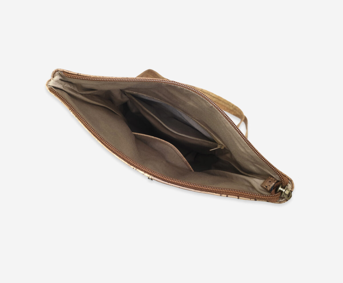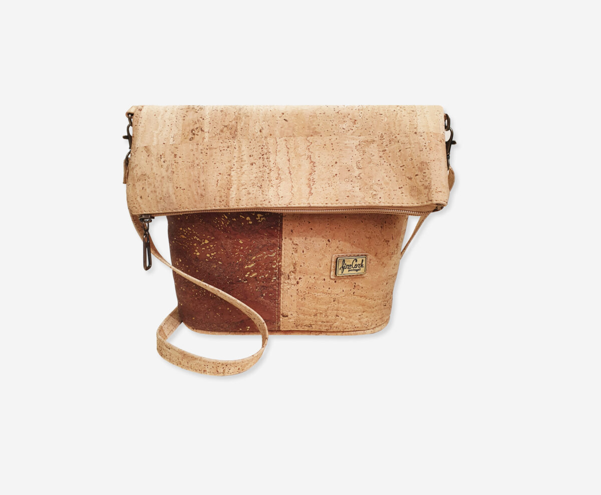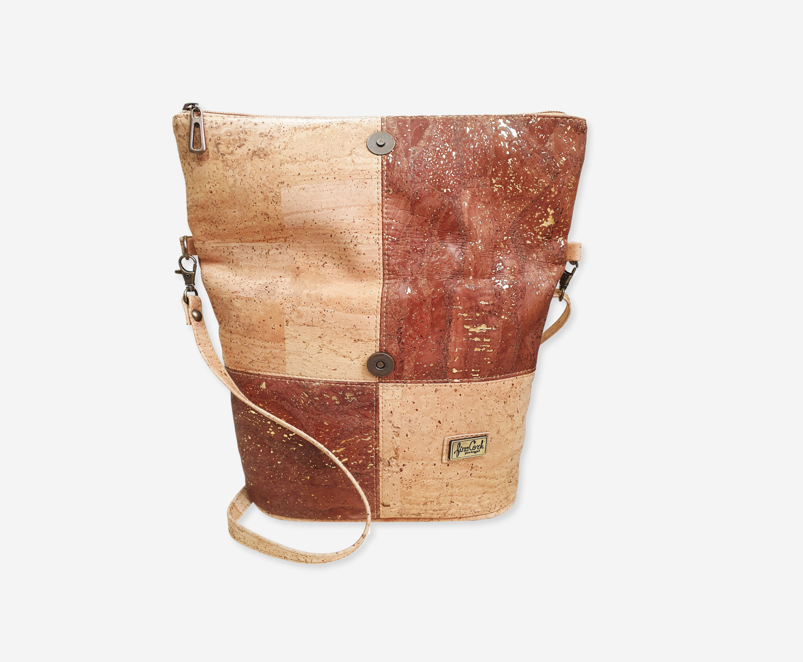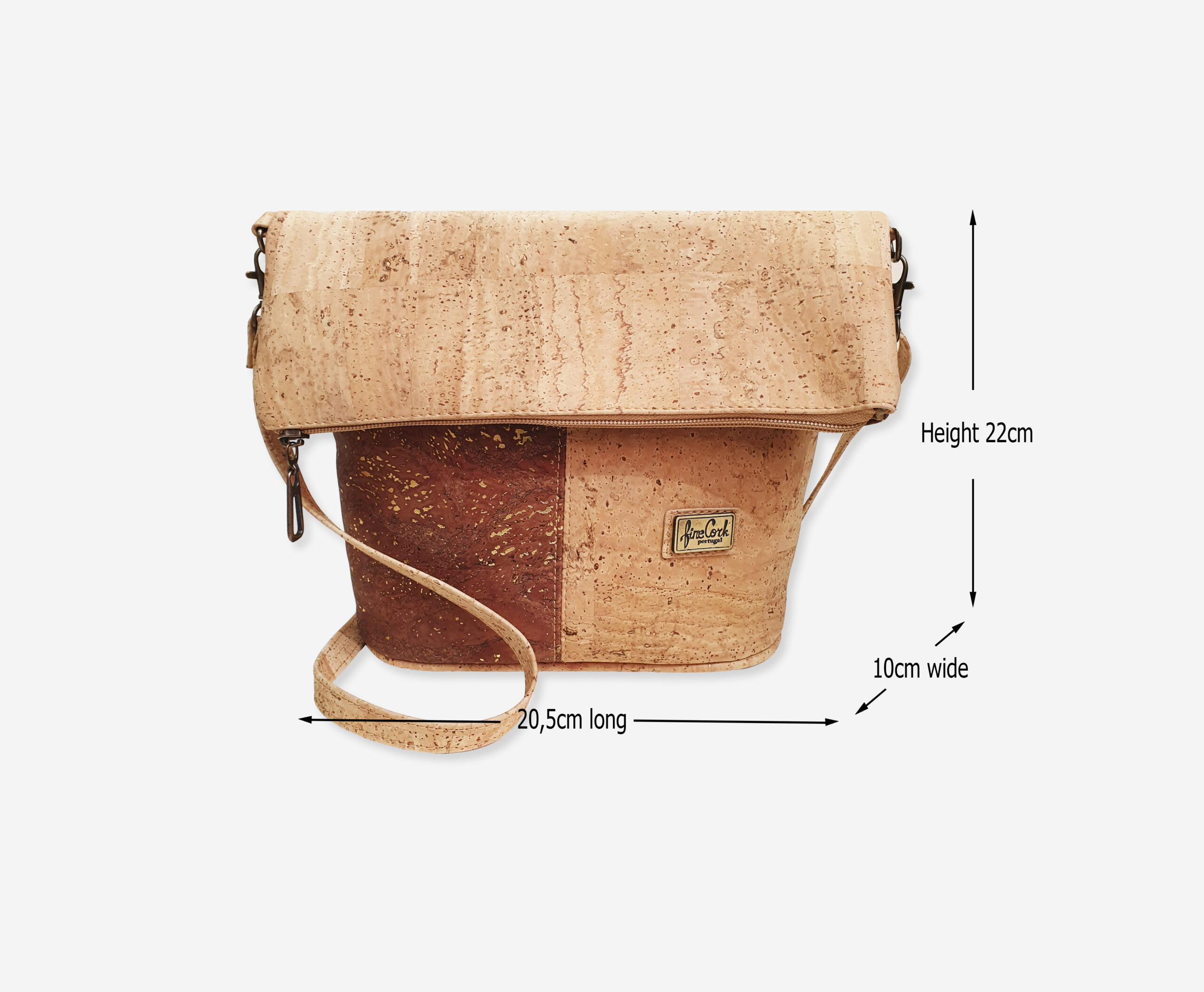 The Handbag made with high quality cork. Closes with a magnet flap on the top. Bag can be worn multiple ways: folded in half and worn with houlder strap over the shoulder or on the shoulder, also carried without shoulder strap how clutch