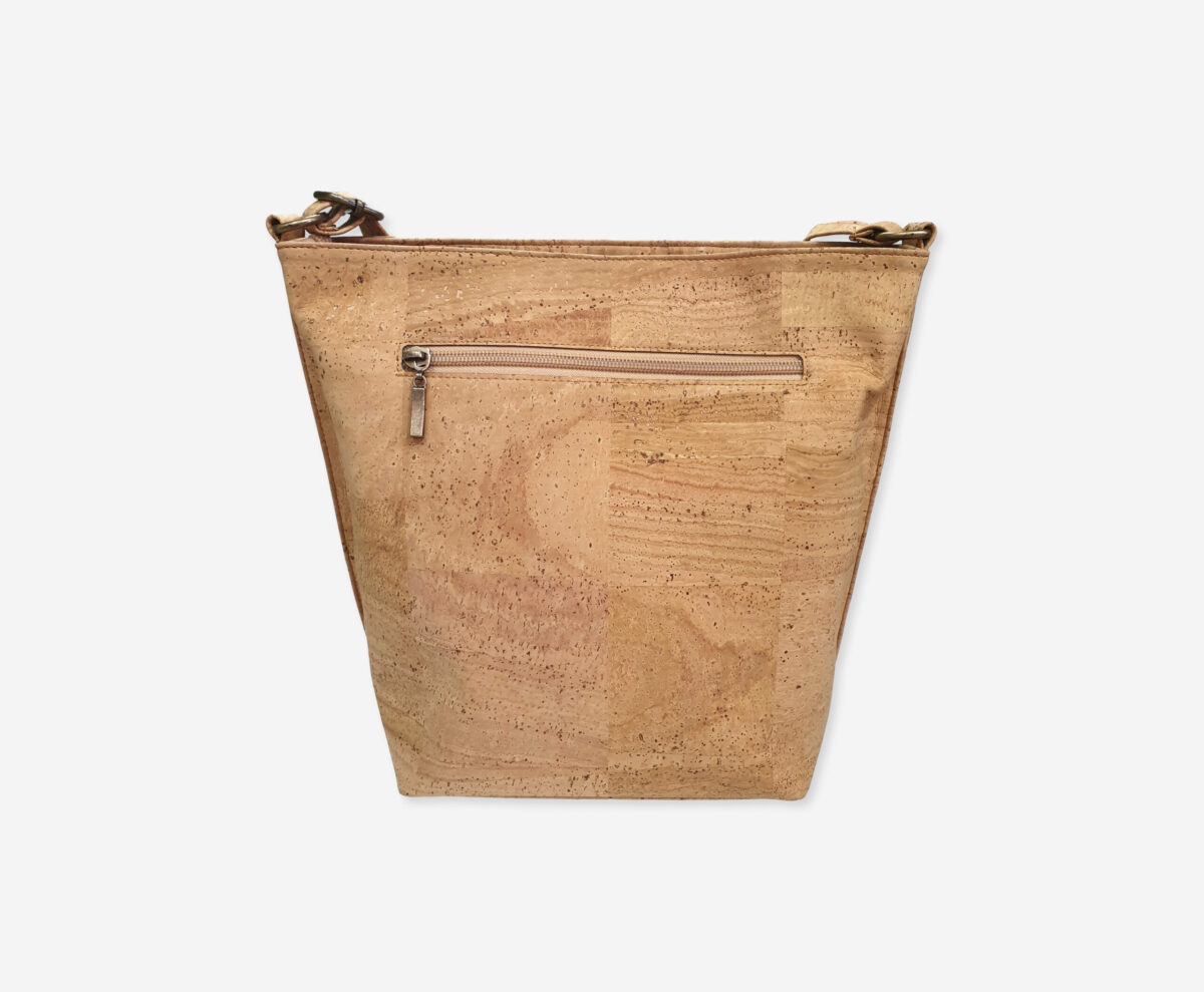 The Shoulder Bag make with high quality cork. The sholder bag closes with a zipper on the top. There is have a long adjustable shoulder strap and can be worn on the shoulder or over the shoulder.