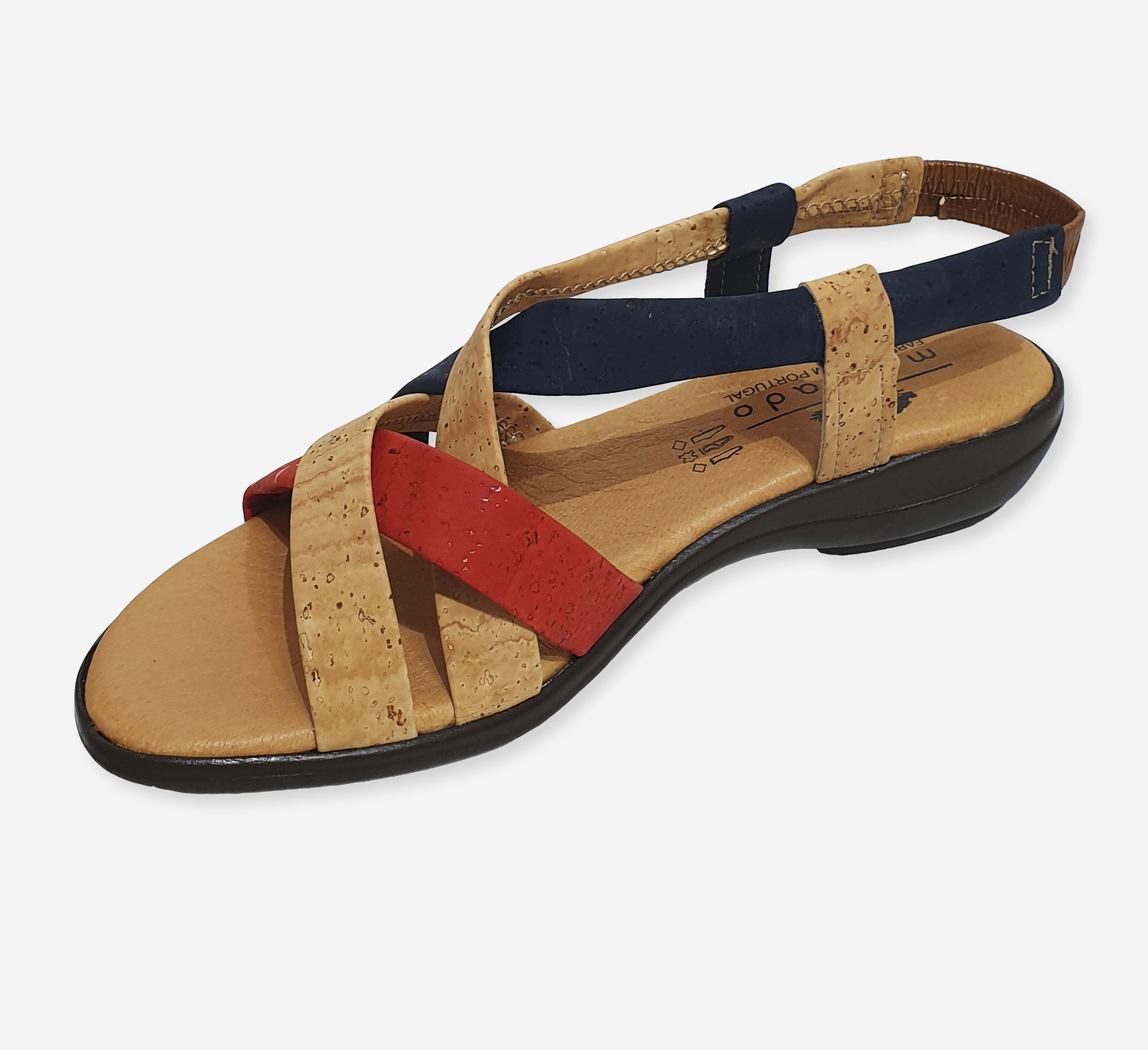 Refined and easy to wear, these sandals feature interwoven cork-textured straps for a breezy, braided look. The soft leather lining ensures all-day comfort, while the elastic back strap provides a snug fit — no buckles needed. Set on a lightly elevated rubber sole, they offer a soft, flexible step for effortless summer days.