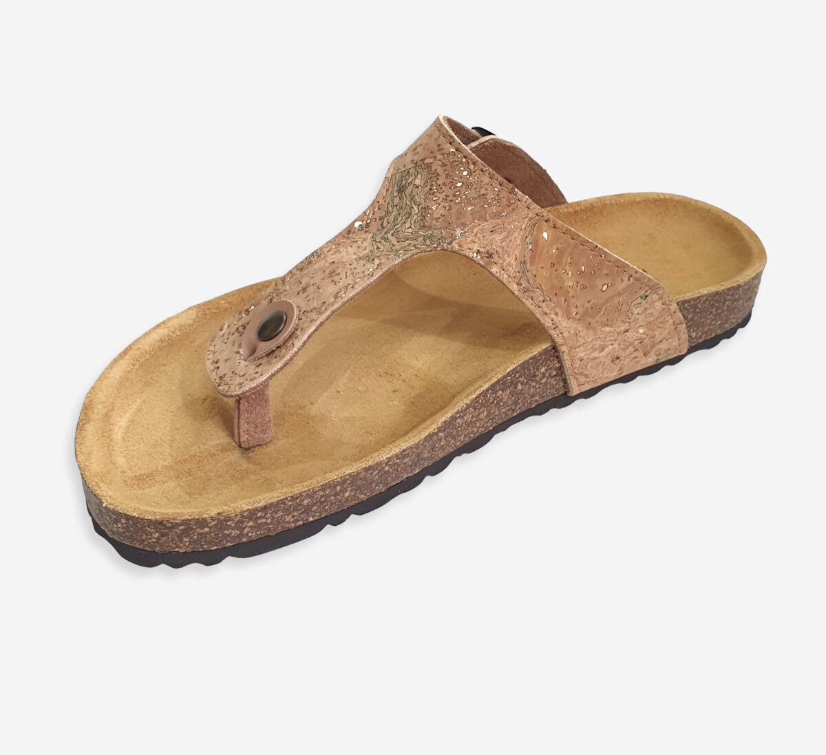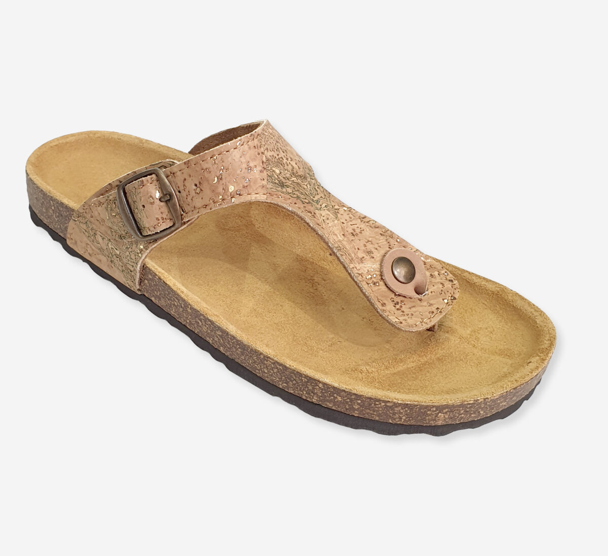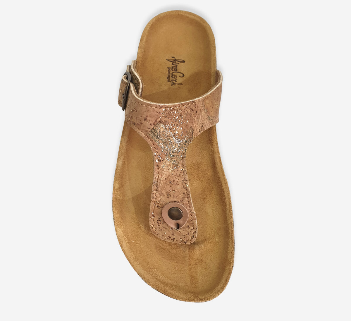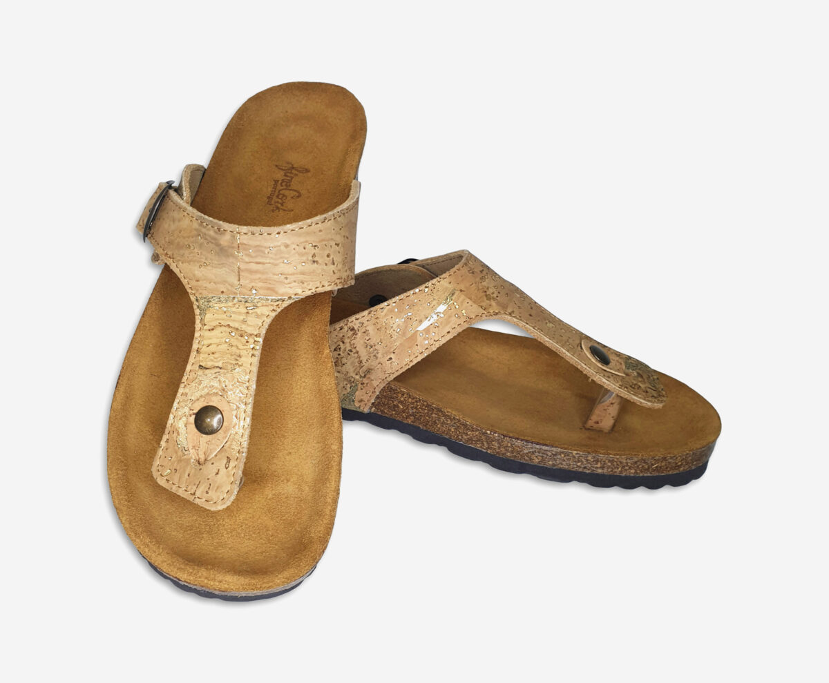 Gold Cork Flat Slippers With Adjustable Strap 001