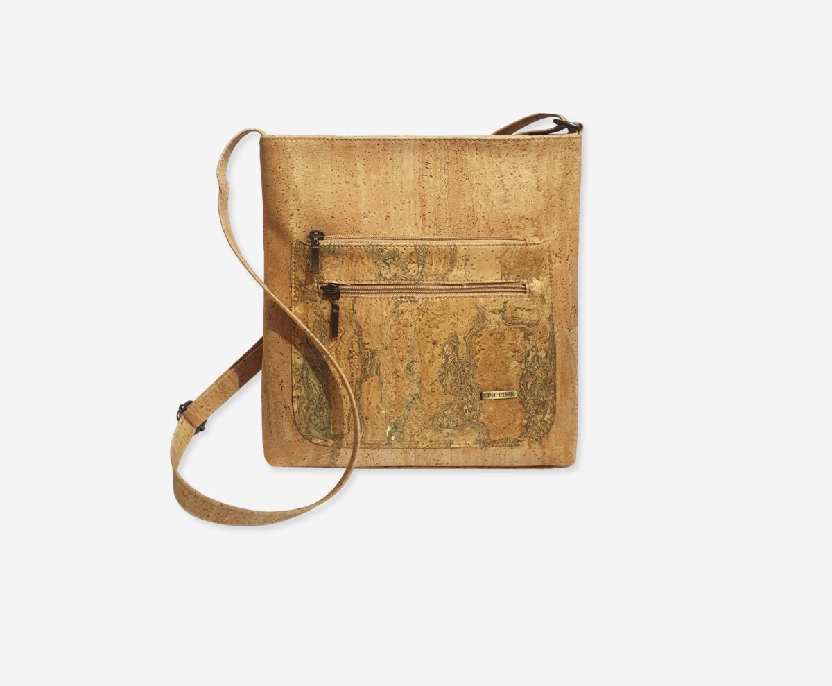 Gold Cork Shoulder Bag With Front Pockets M4416