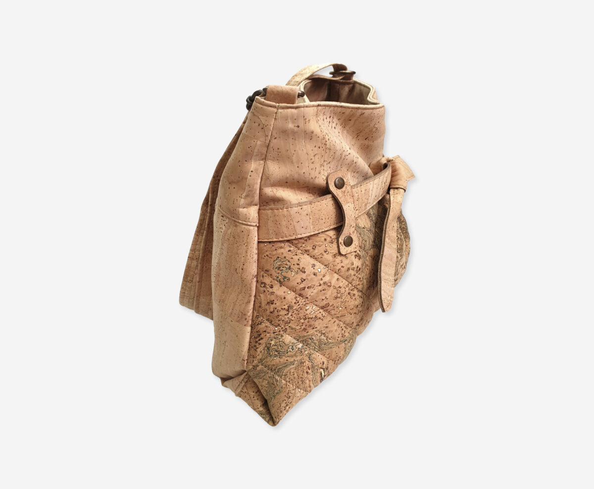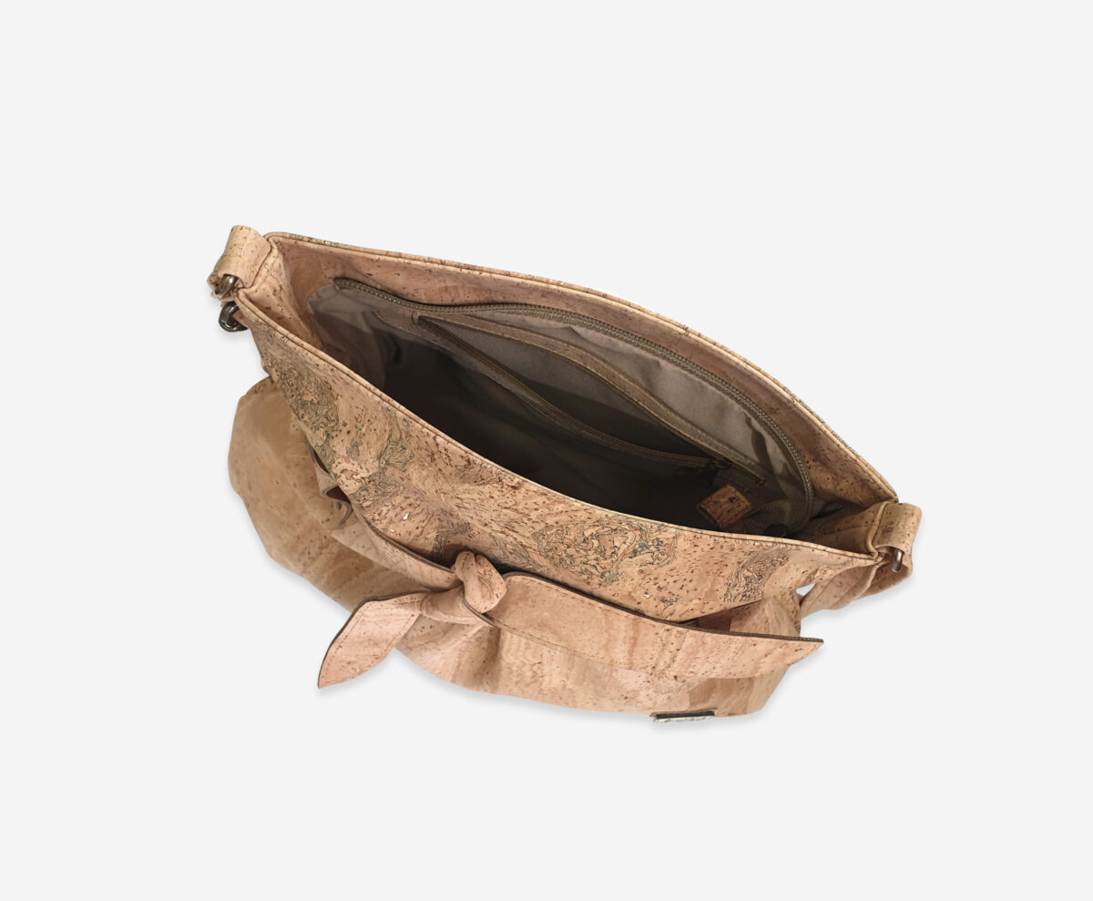 Stylish Gold Shoulder Bag with higth quality cork. There is decorative bow the outside. Bag has a long adjustable shoulder strap and can be worn on the shoulder or over the shoulder. In front there is a our branded label.