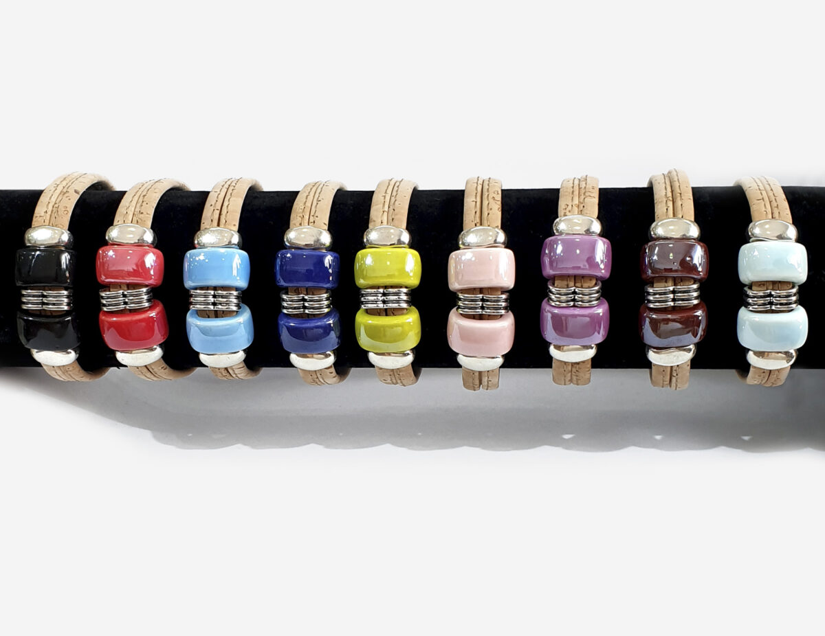 Handmade Cork Bracelet With Colorful Stones