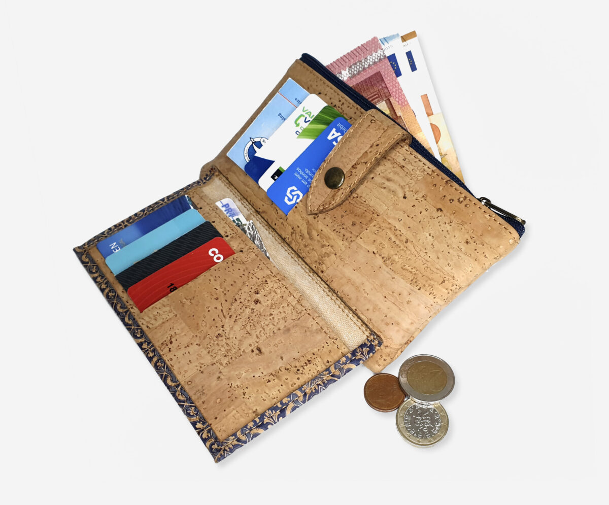 Large Cork Clip Purse For Women with typical portuguese decorative print “azulejo” on the cork.