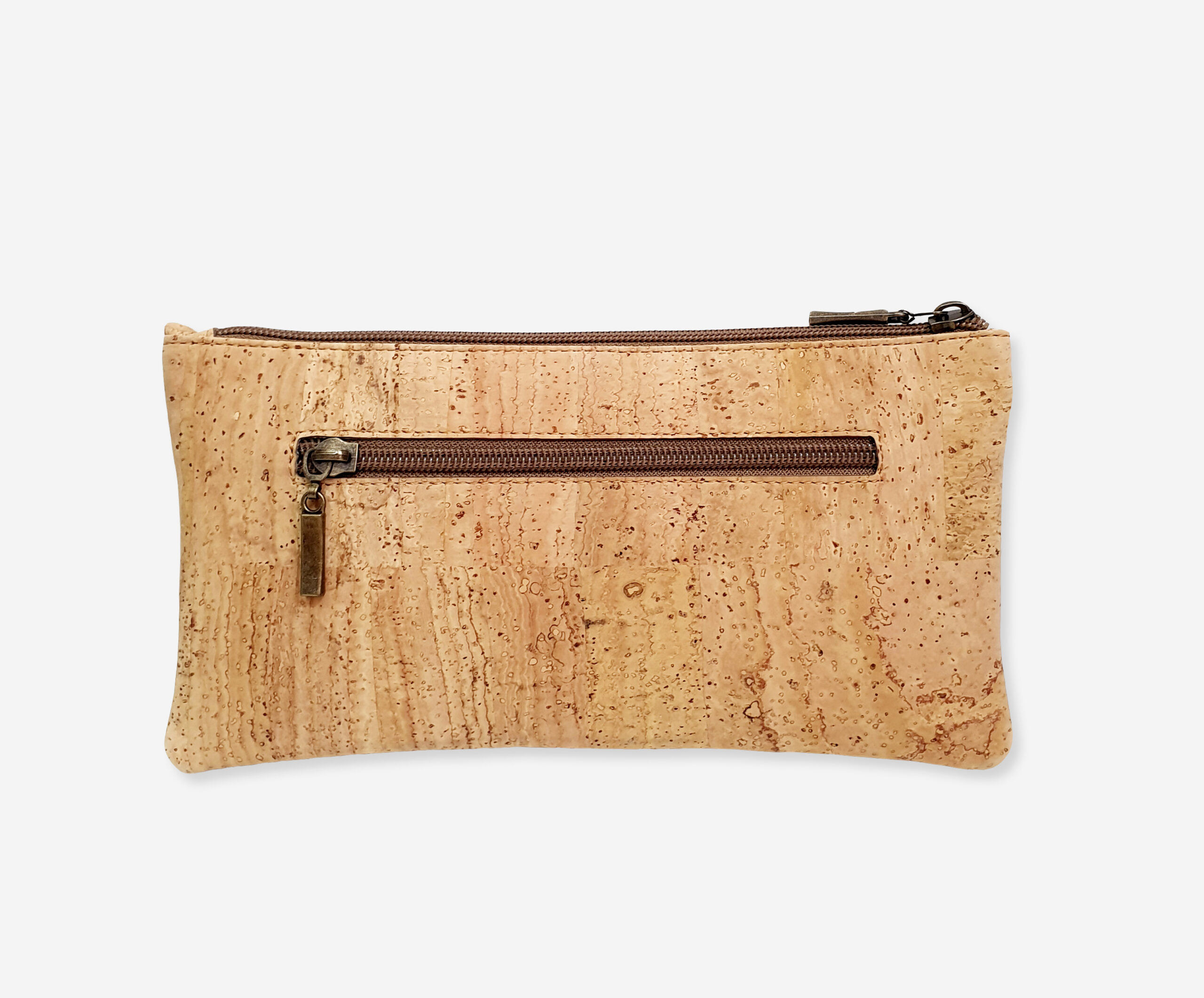 Rectangular Cork Cosmetic Bag made with high quality cork. There is decorative print and design is accented with a subtle logo our company plaque to it’s front for a branded completion.