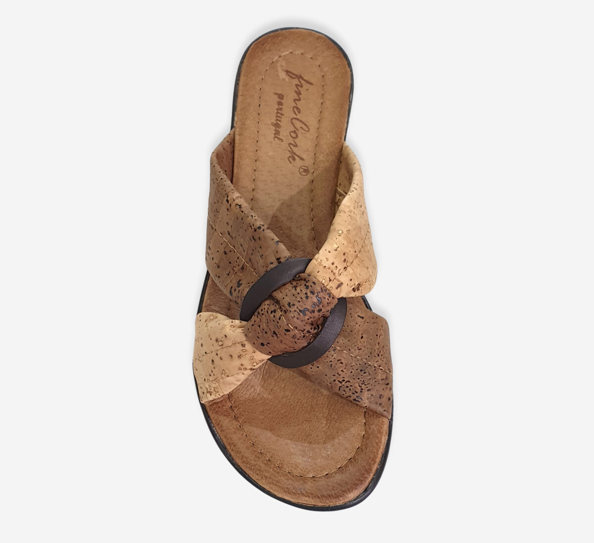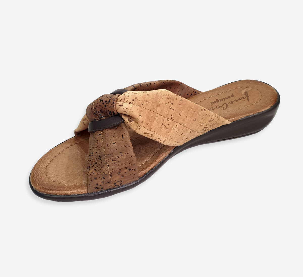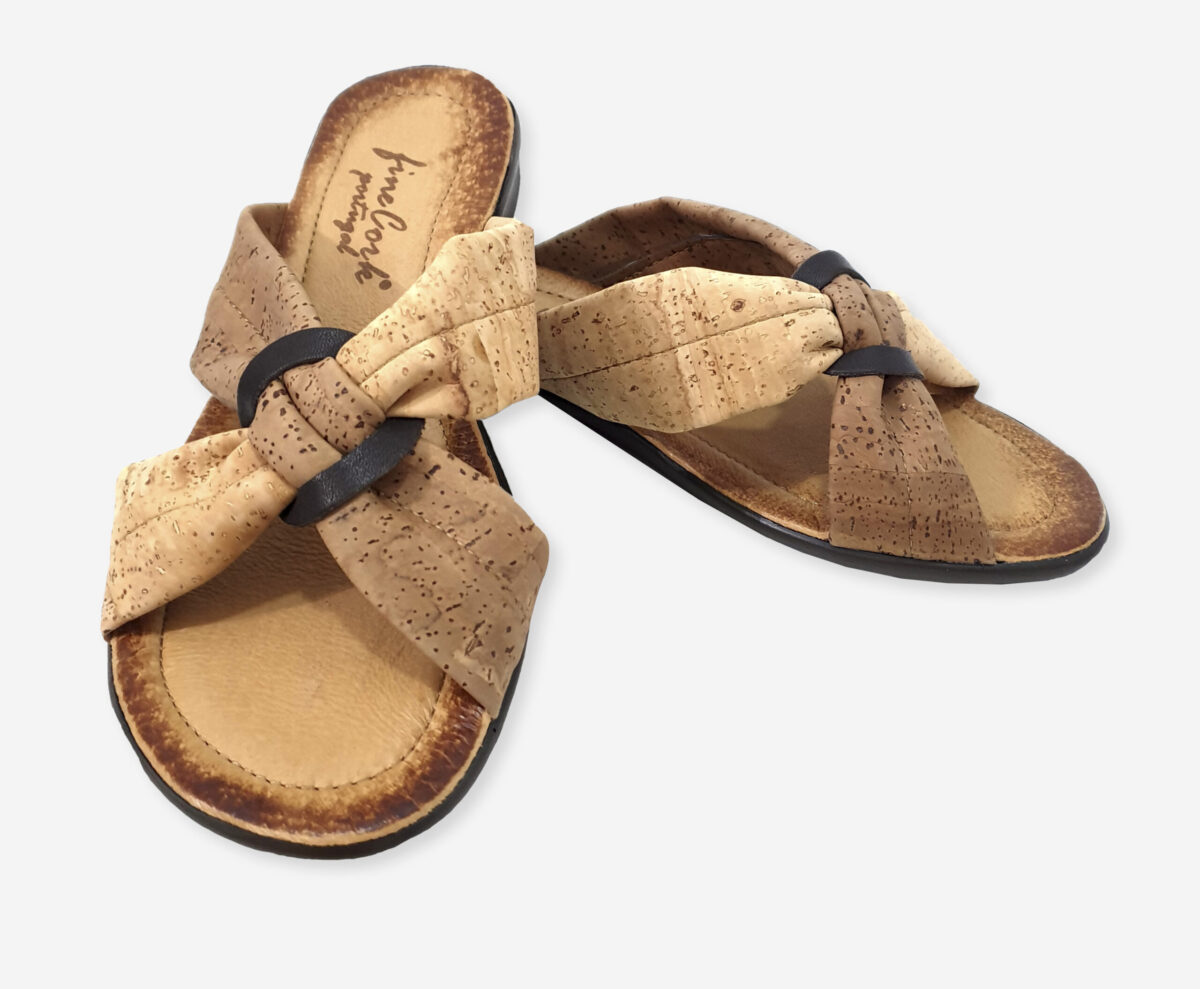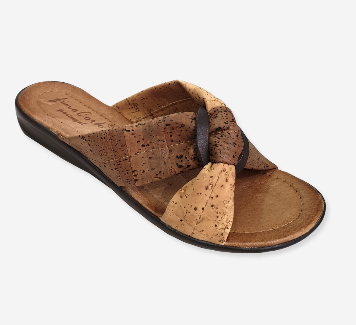 Effortless comfort with a natural touch. These cork slides feature crossed straps for a secure fit and stylish silhouette. Lightweight and breathable with a soft leather insole — perfect for both city strolls and summer getaways.