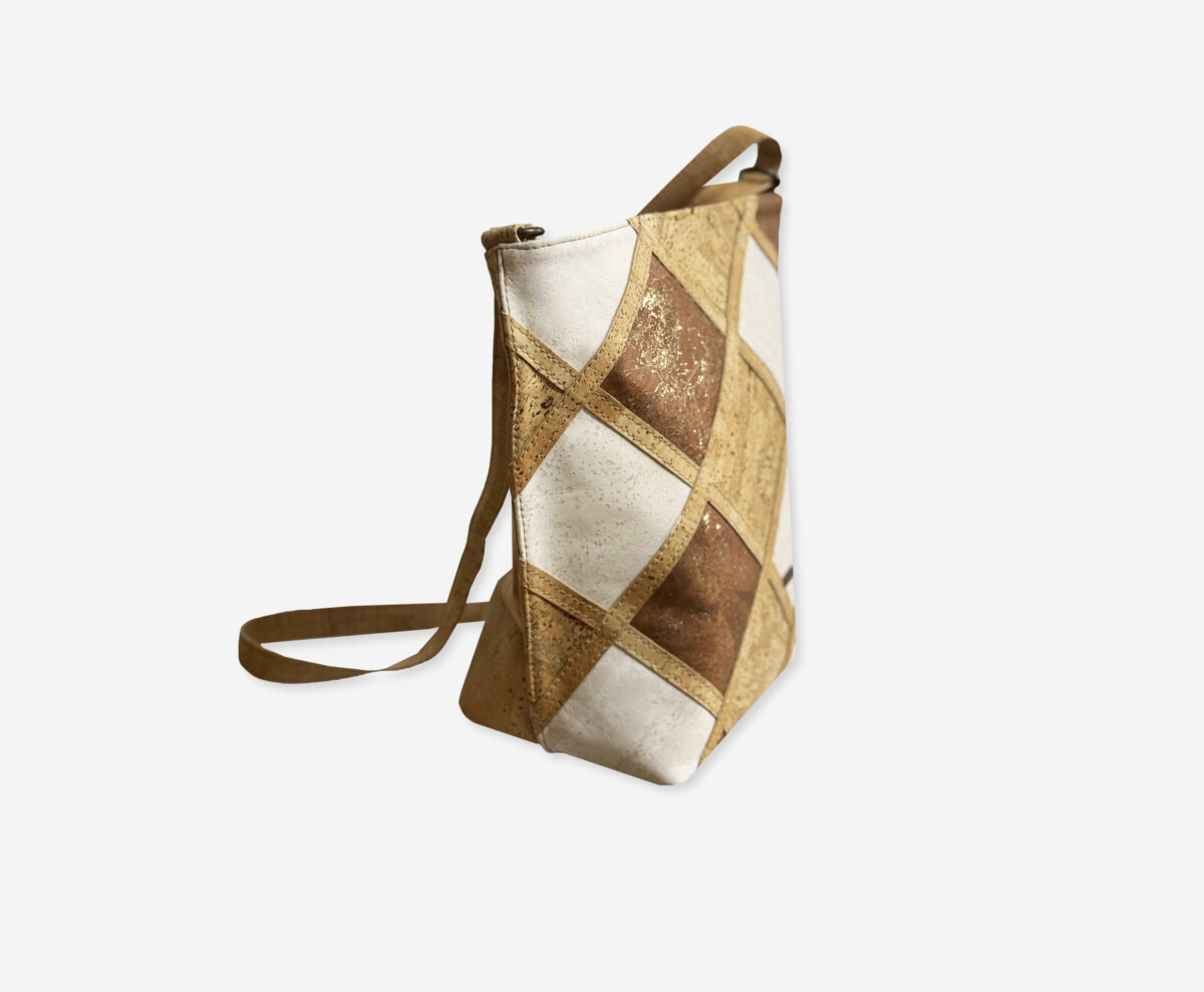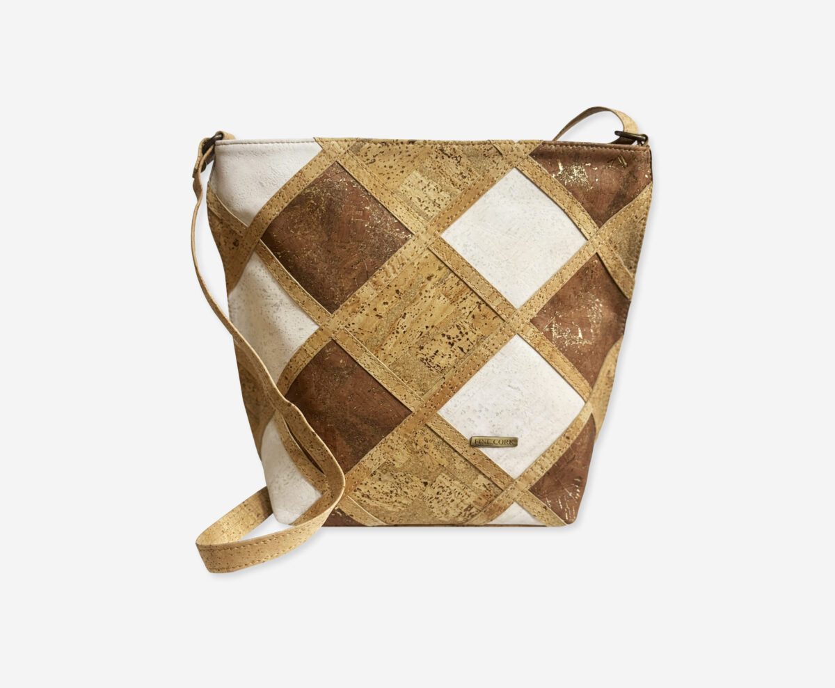 Cork Shoulder Bag with high quality cork. The bag has one main compartment and closes with a zipper on the top. There is a long adjustable shoulder strap and can be worn on the shoulder or over the shoulder. In front there is a our branded label.