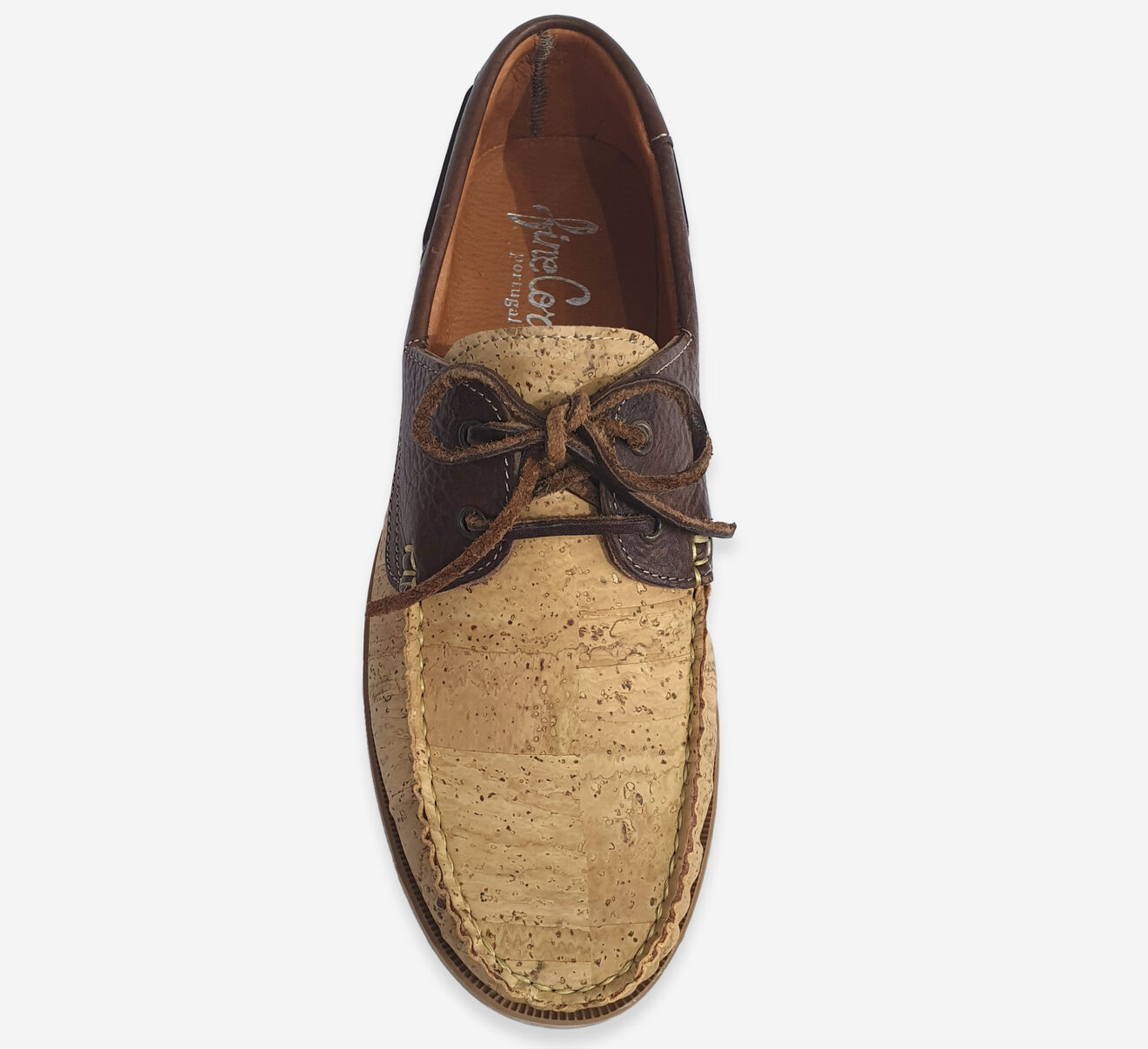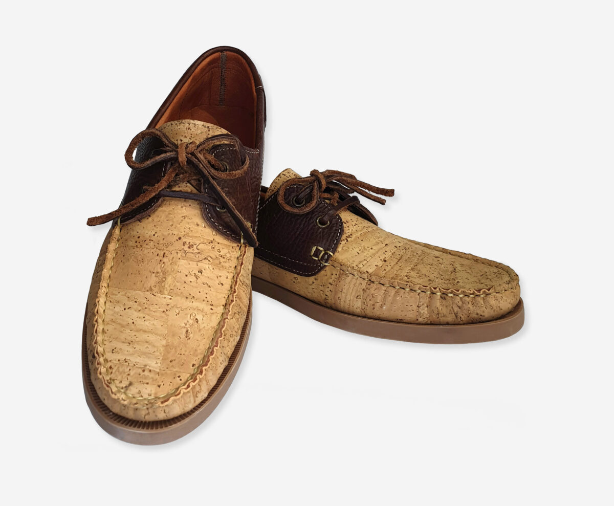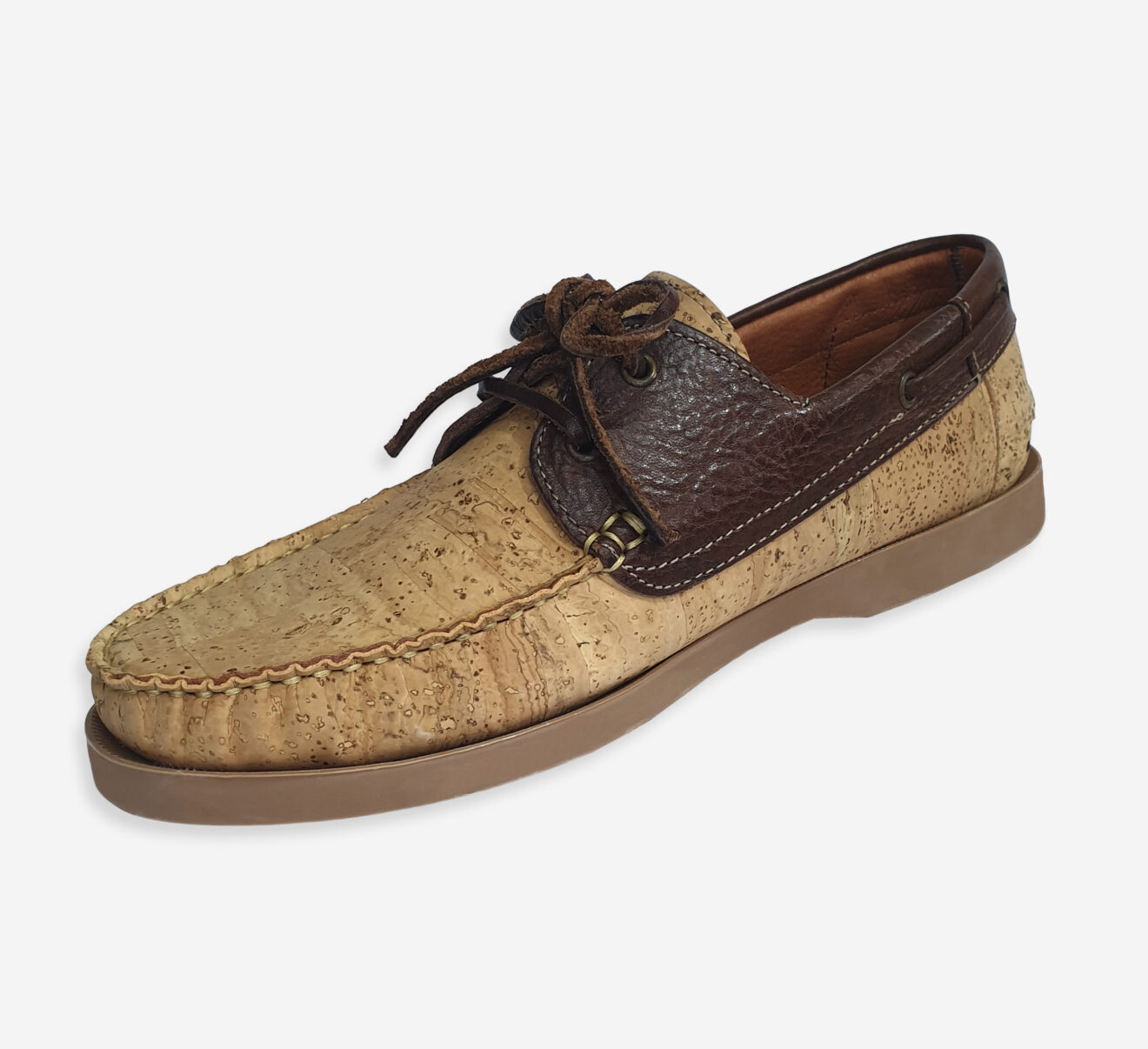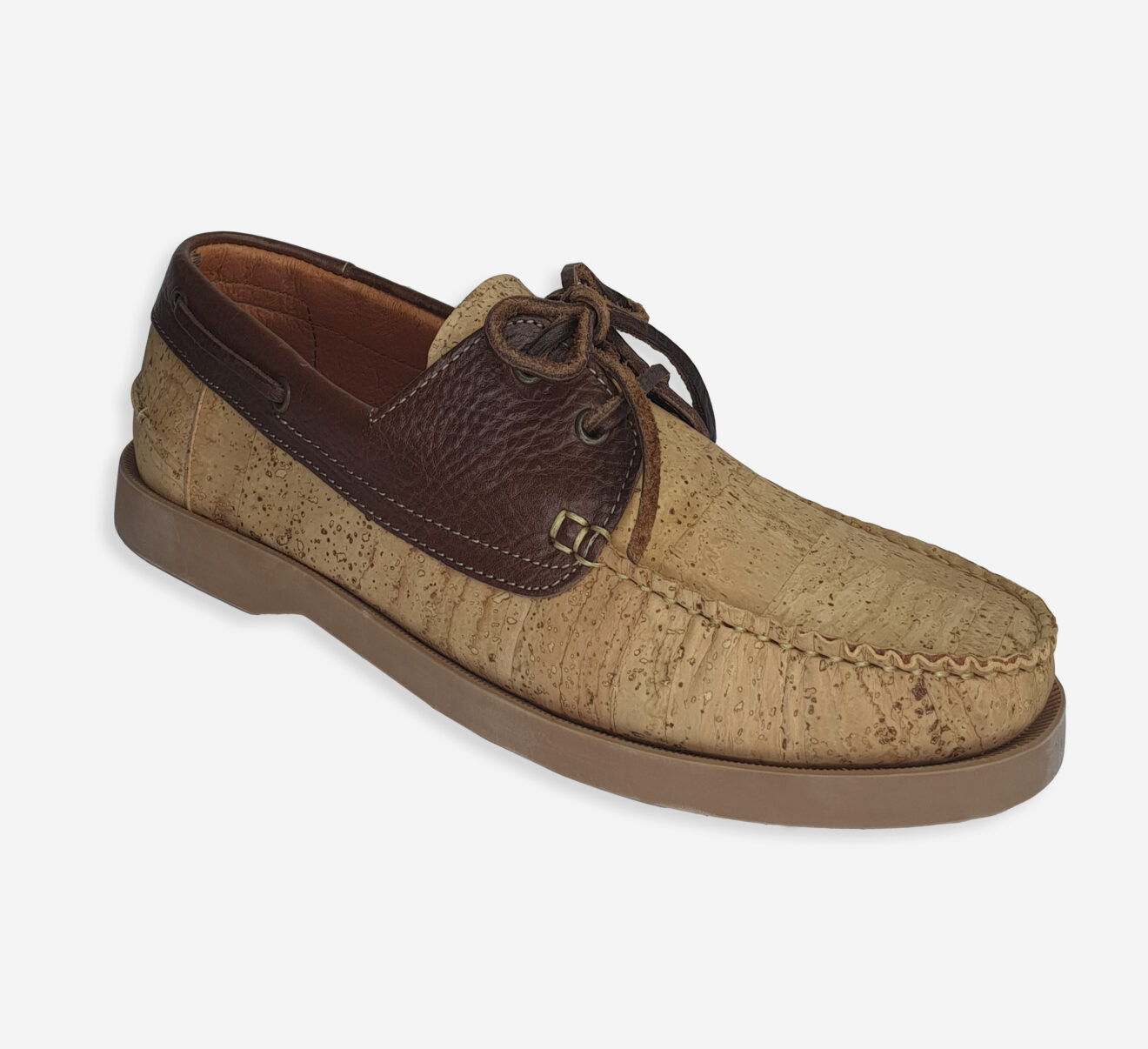Men’s loafers featuring a natural cork upper with leather inserts around the laces area. The leather laces add a touch of style and sophistication. The insole has a rubber coating for comfort and reliable grip, preventing slipping. These loafers are the perfect choice for those who value comfort and elegance in everyday and business footwear.