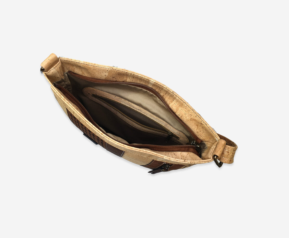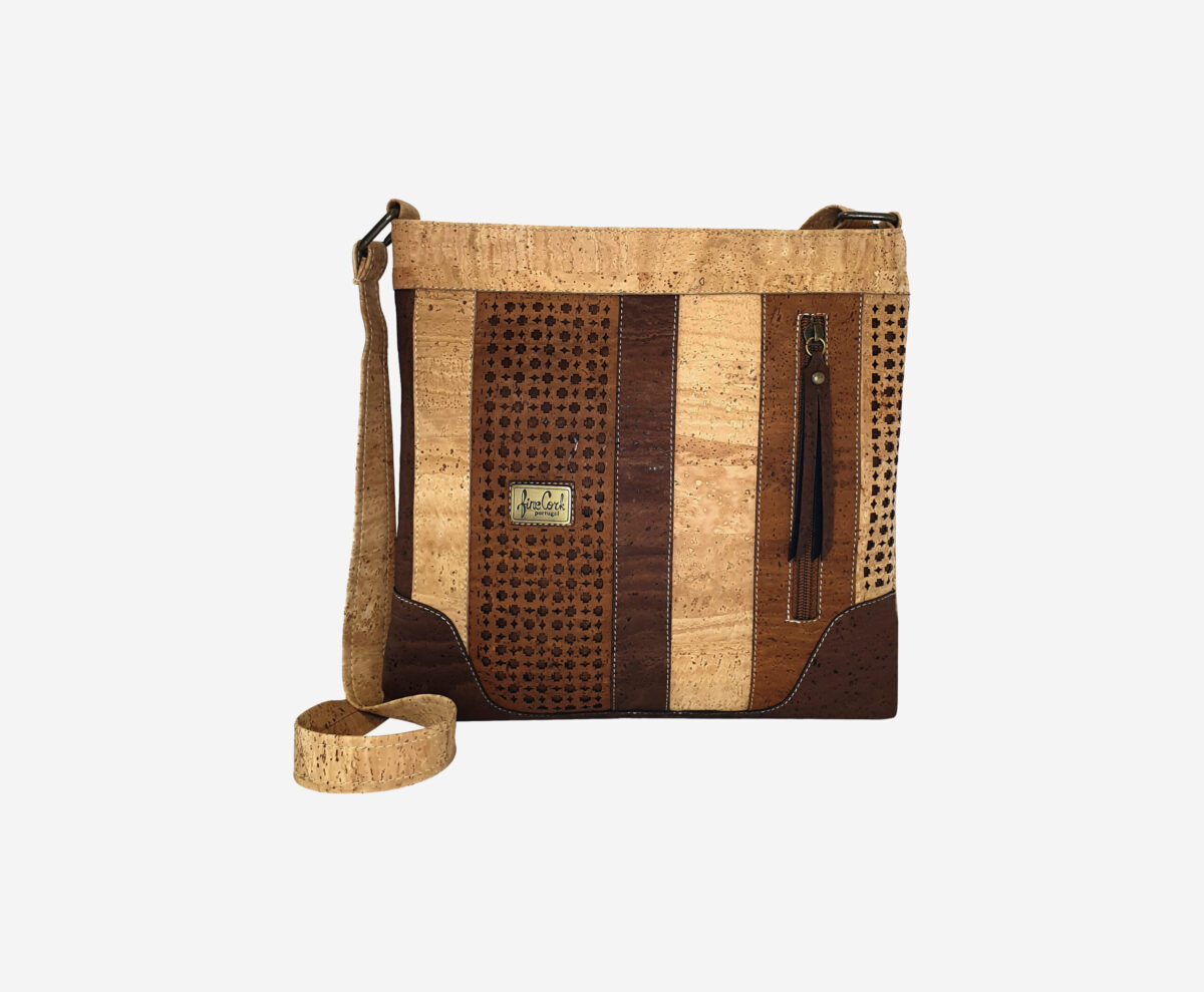 The Handbag made with high quality cork. There is unusual design mixed cork color compliments your everyday style. Bag closes with a zipper on the top. Bag can be worn over the shoulder or on the shoulder.