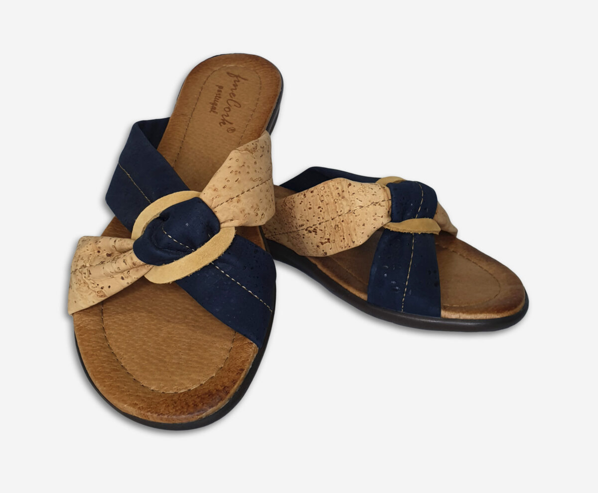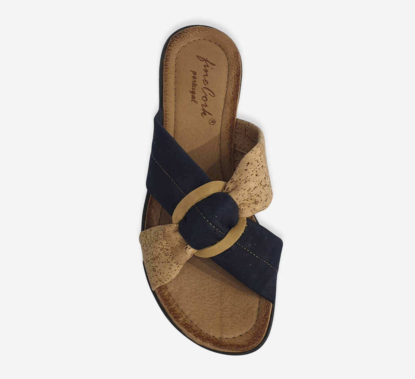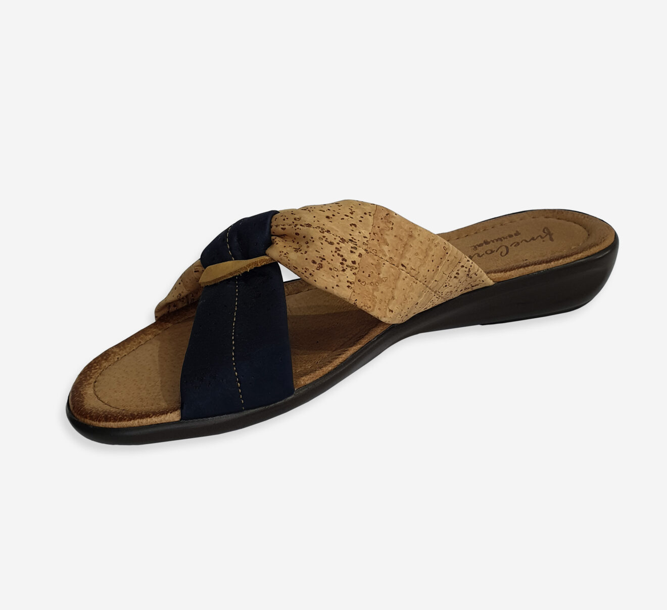Women Blue Cork Slippers Criss-Cross Straps 311