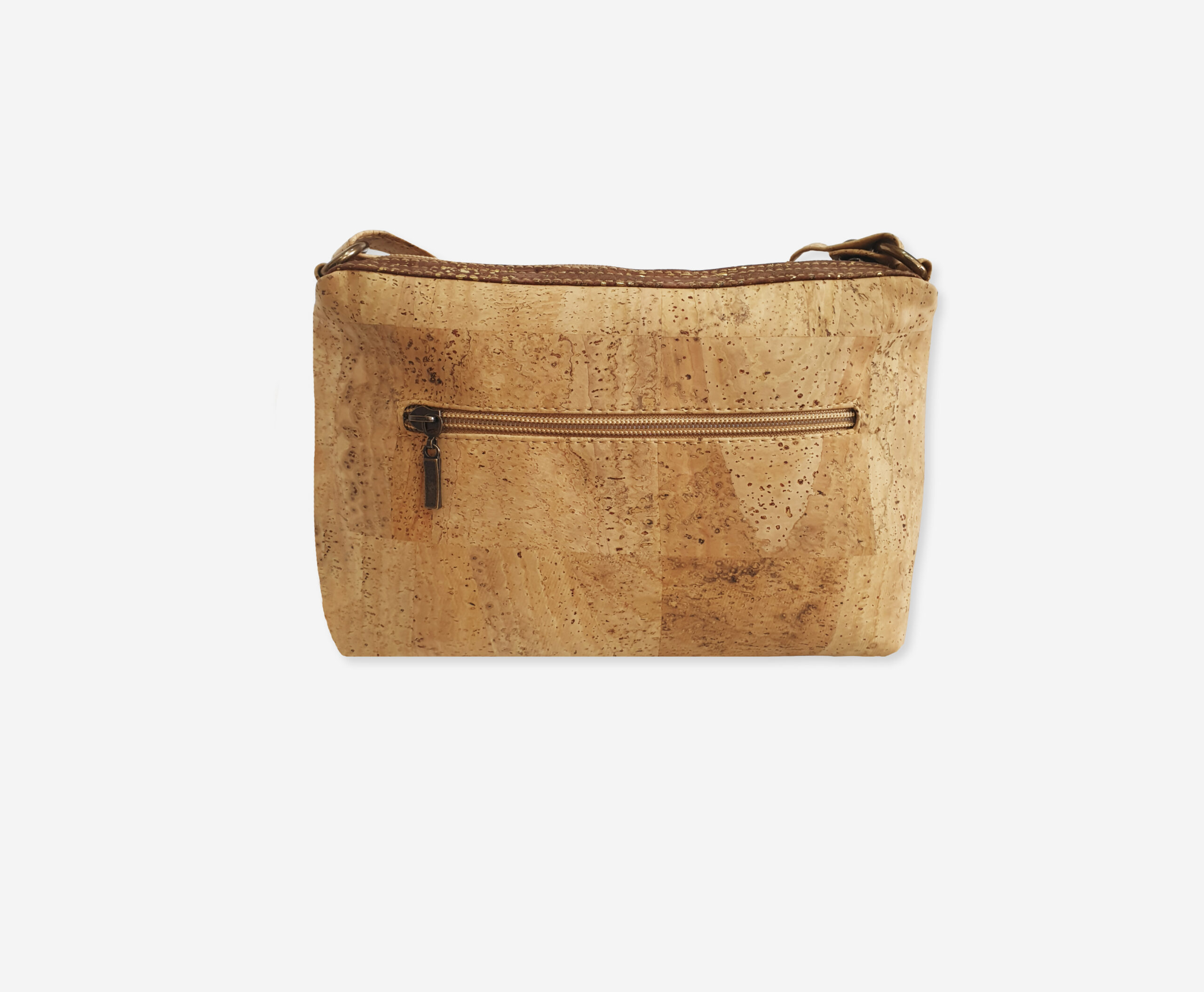 Small Cork Shoulder Bag with high quality cork. The wide bag has a one main compartment a spacious area to hold your essentials such as wallet, phone, keys, and small personal items. Closes with a zipper. Has zippered pocket inside: additional secure pocket for storing valuables like cash, cards, or jewelry. There is a long adjustable shoulder strap and bag can be worn on the shoulder or over the shoulder and can be adjusted to your preferred length for comfortable carrying. In front there is a our branded label.