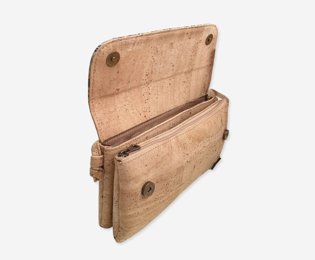 Mini Cork Bag made with high quality cork with decorative print design to it’s front, and has a subtle logo our company plaque to it’s front.