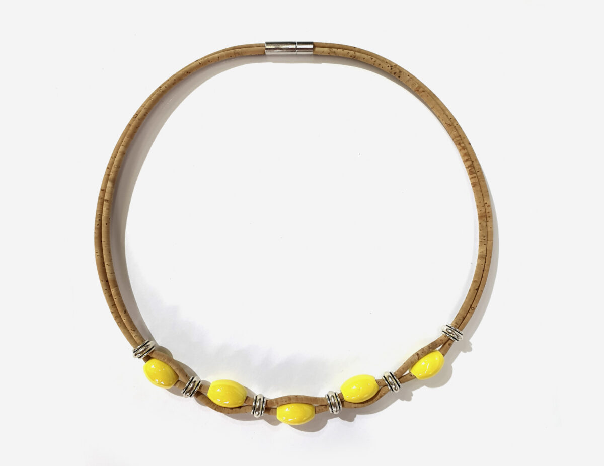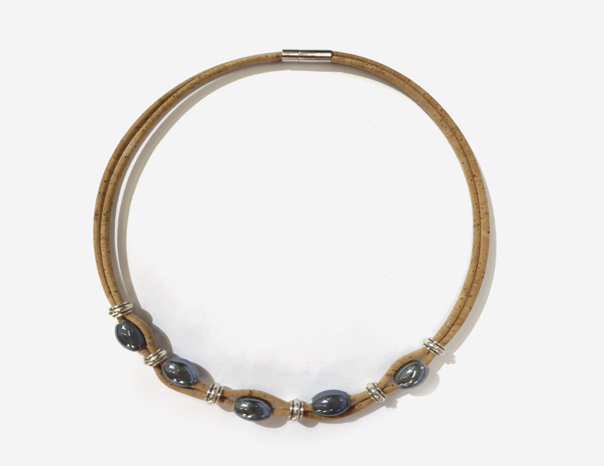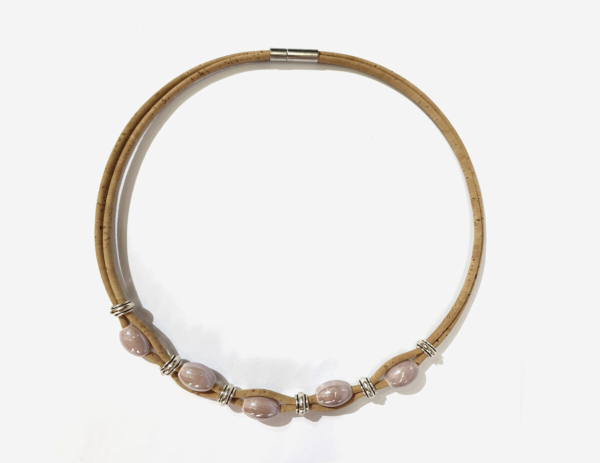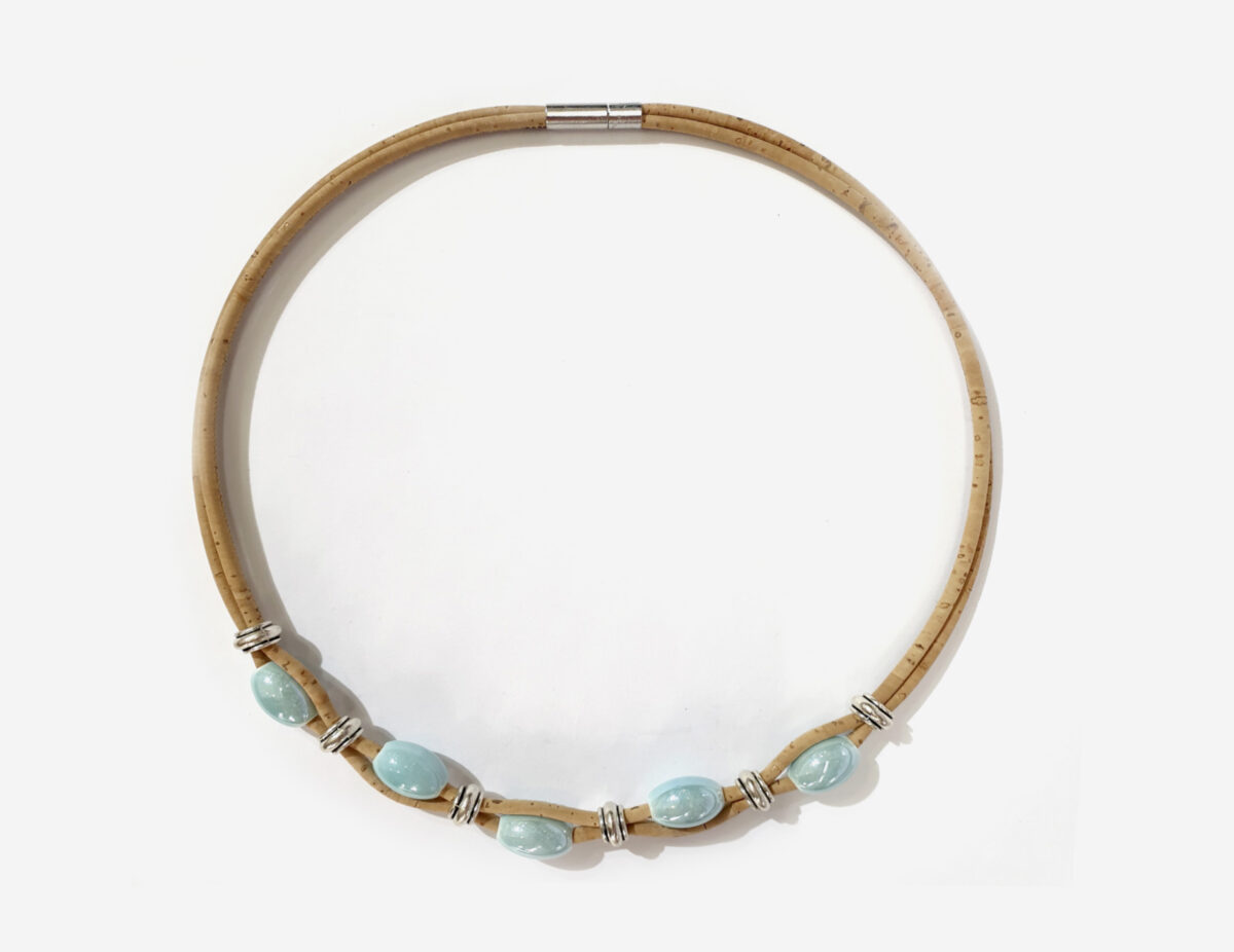 Handmade Cork Necklace make with high quality cork and natural ceramic stones.