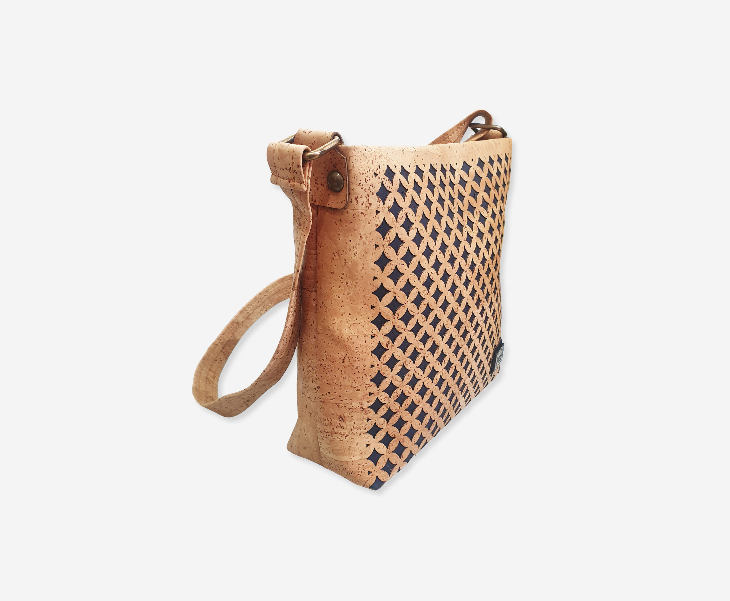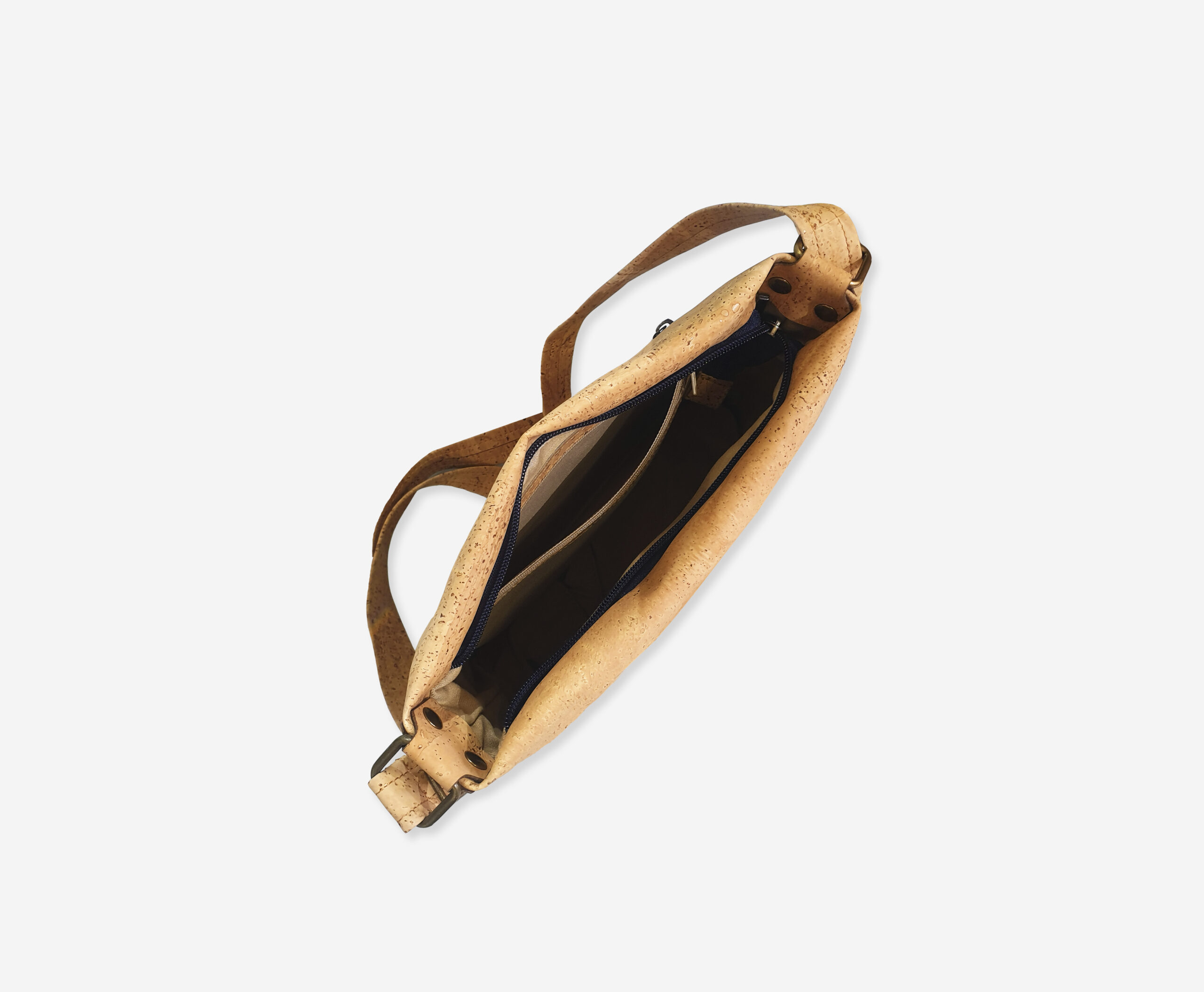 The cork shoulder bag can be worn on the shoulder or over the shoulder.