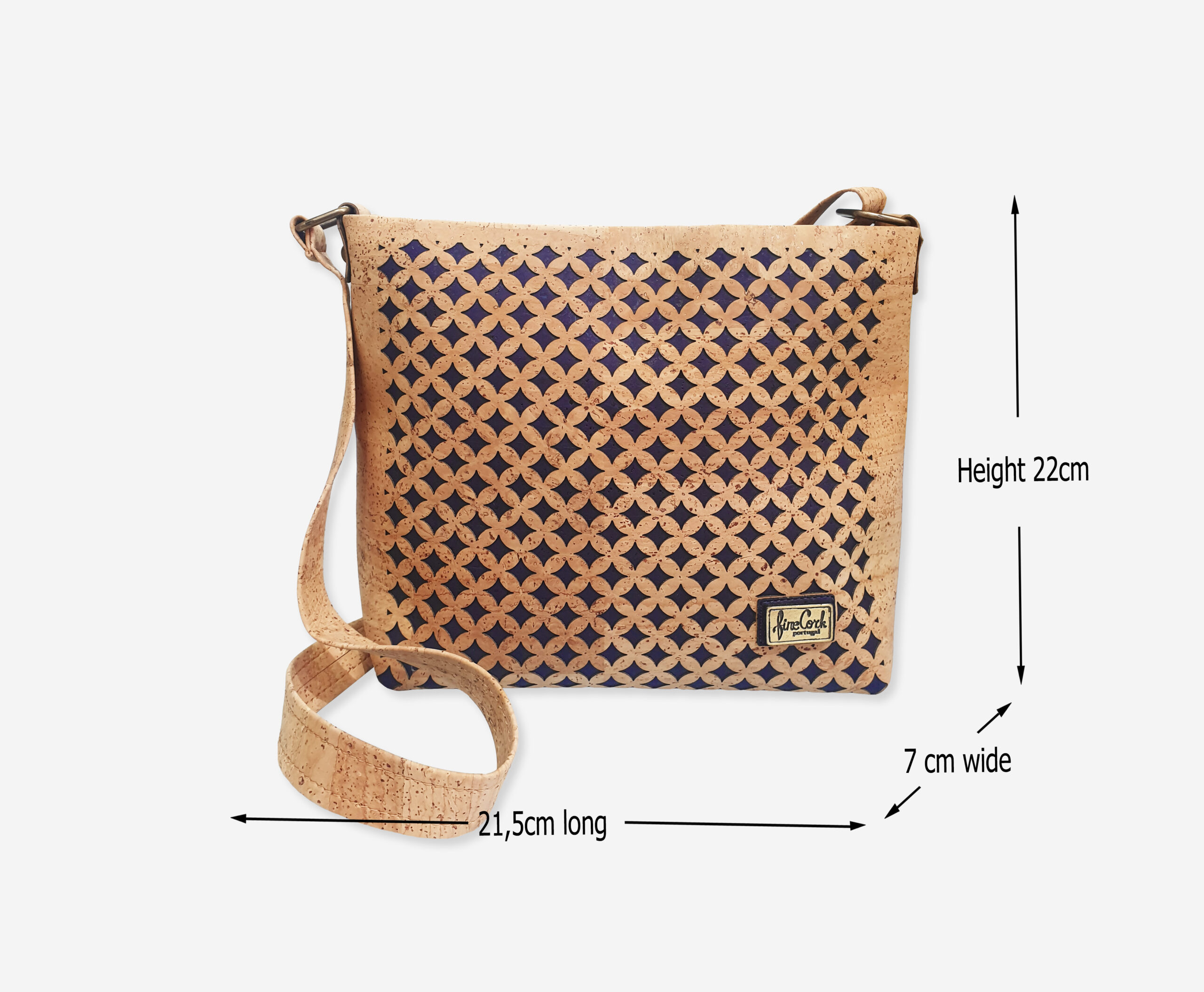 Cork Shoulder Bag with high quality cork. There is perforated-effect cork on the outside.The cork sholder bag closes with a zipper. They have a long adjustable shoulder strap made of natural color cork. Size : 1.50 cm.