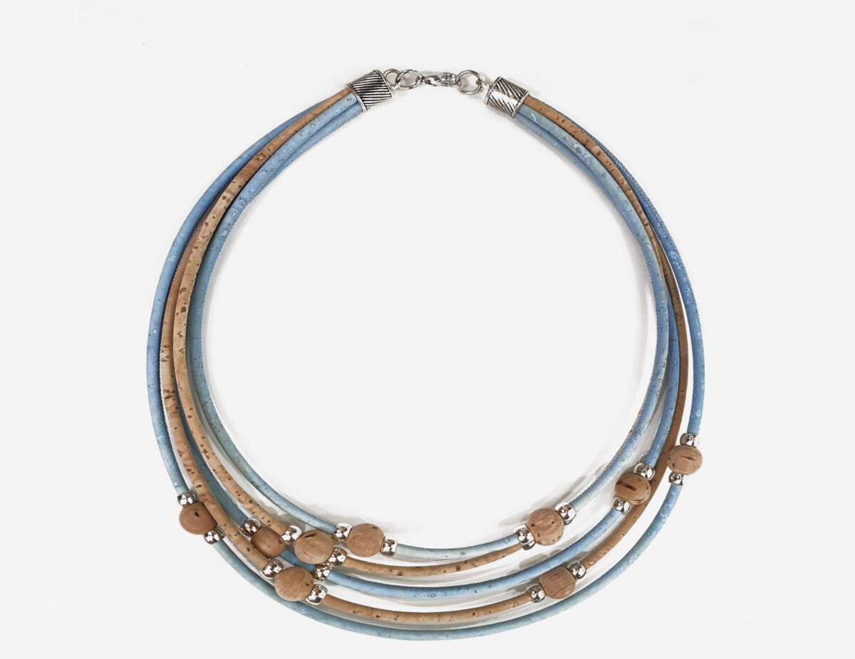 Vegan Handmade Necklace with high quality cork and stones make in ceramic.