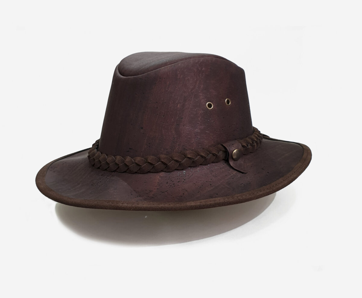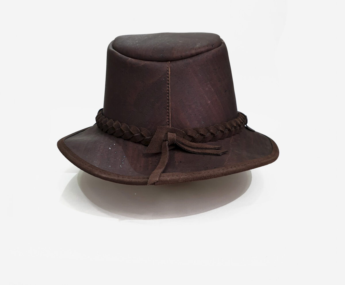 Men Real Cork and Leather Cowboy Hat make with high quality cork and genuine leather. Hat features a small brim which is reinforced with a flexible to allow this hat to be crushed if needed for travel. It it designed with a snap on each side which allows for a band or scarf of your choice