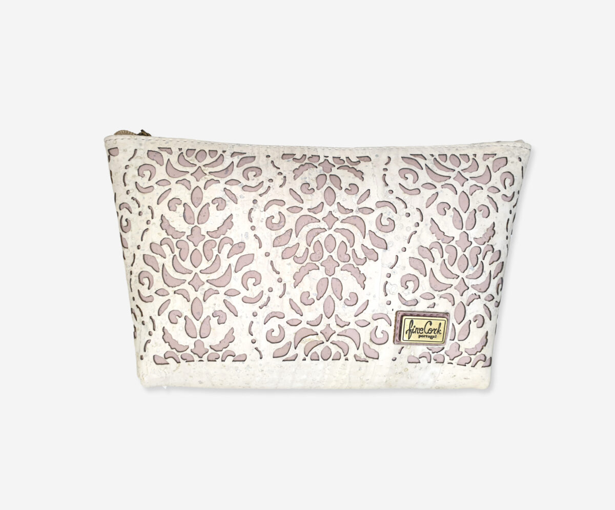 MakeUp Bag made with high quality cork. There is decorative pattern represents the famous portuguese filigree cut on cork and design is accented with a subtle logo our company plaque to it’s front.